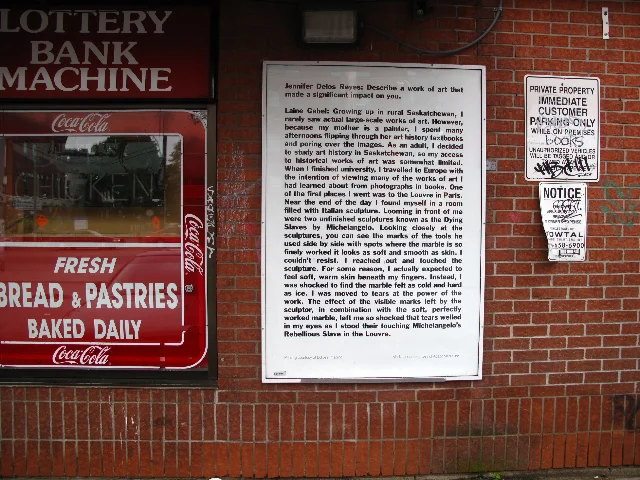 A billboard project organized for Nuit Blanche by Paul Butler, the exhibition took place in dozens of 4 x 6 ft advertising poster-frames throughout downtown Toronto for one night only in October, 2009.